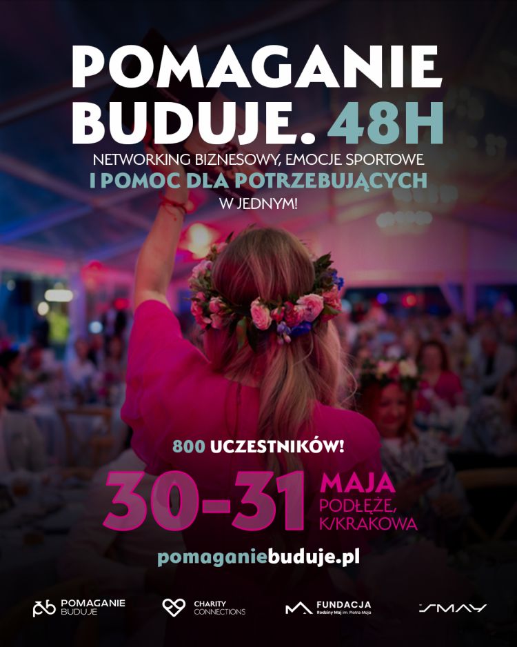 Już 30–31 maja w Podłężu (k/Krakowa) odbędzie się wydarzenie Pomaganie Buduje.48h. Zapraszamy Cię na wyjątkowe dwa dni, które łączą branżę budowlaną we wspólnym, charytatywnym celu. To miejsce, gdzie spotykają się biznes, sport i pomaganie.