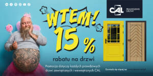 15 maja ruszyła nowa kampania promocyjna producenta drzwi drewnianych i hybrydowych – marki CAL prawdziwe drzwi. Promocja „WTEM!” to wyjątkowy rabat na prawdziwe drzwi – w maju drzwi zewnętrzne i wewnętrzne CAL aż 15% taniej. Co jeszcze jest w niej wyjątkowego?