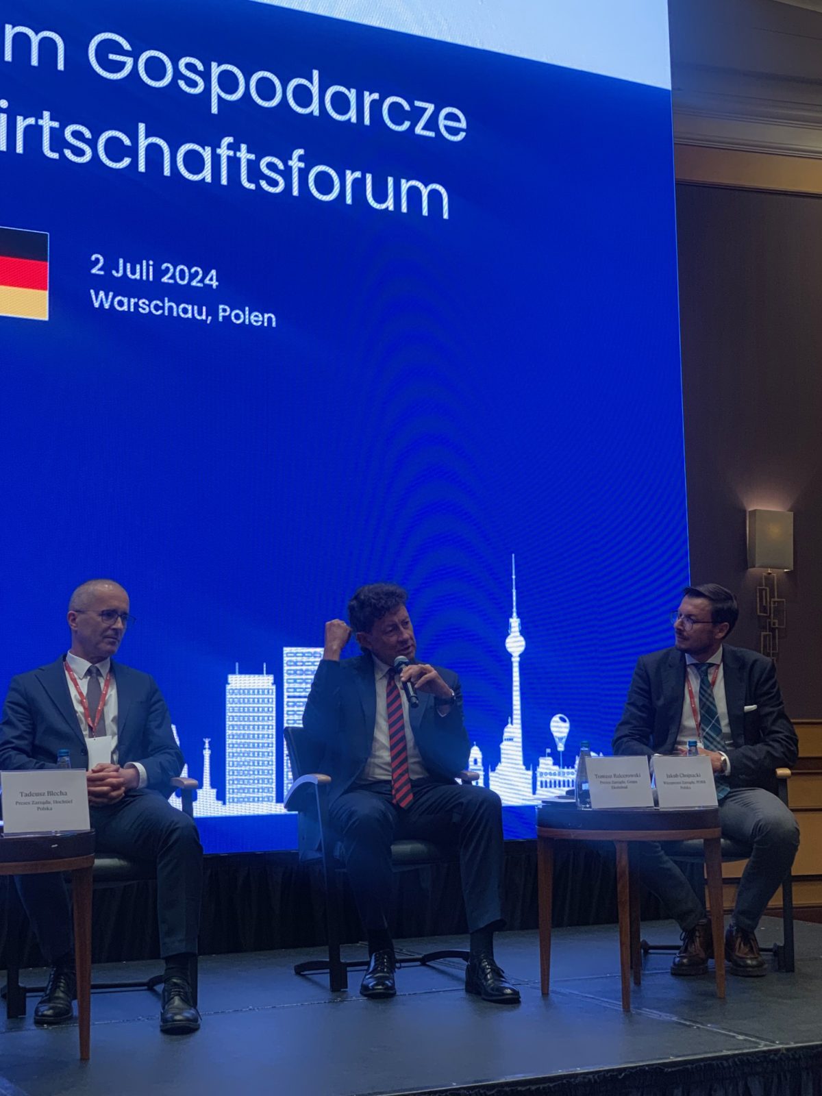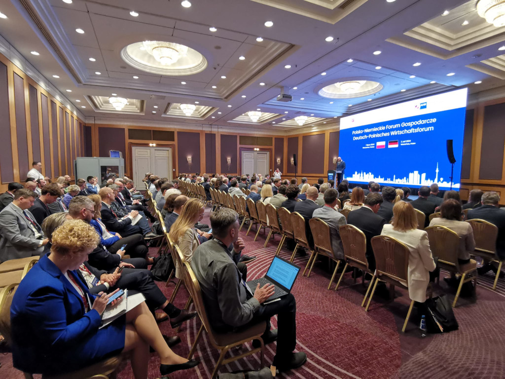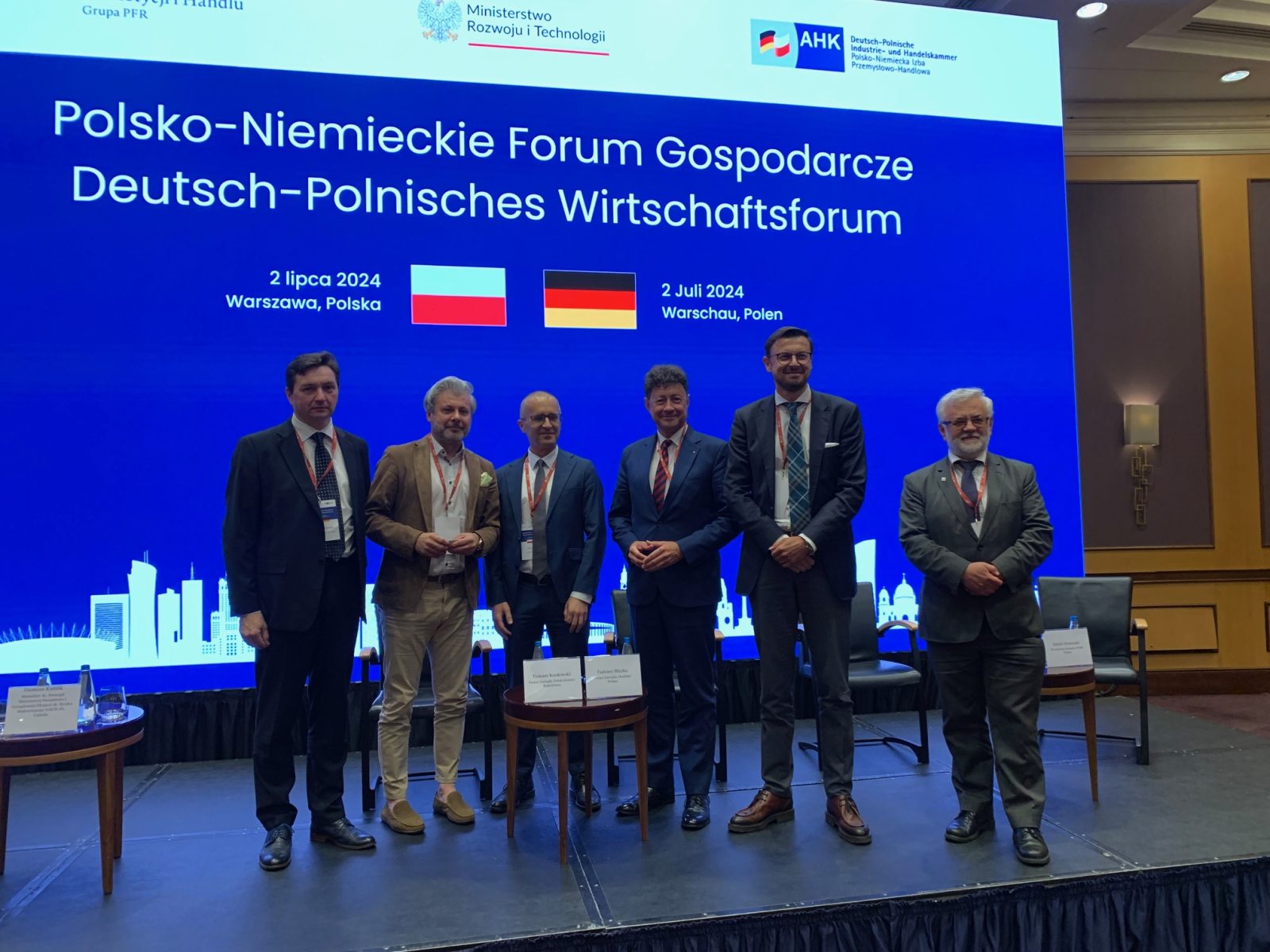 Licznie zgromadzeni przedstawiciele świata biznesu, instytucji państwowych oraz branżowych organizacji z Polski i Niemiec spotkali się 2 lipca w ramach Polsko-Niemieckiego Forum Gospodarczego. Forum zostało zorganizowane przez Polską Agencję Inwestycji i Handlu (PAIH) we współpracy z Polsko-Niemiecką Izbą Przemysłowo-Handlową (AHK Polska) oraz Ministerstwem Rozwoju i Technologii. Na wydarzeniu zgromadziło się łącznie ponad 200 uczestników którzy mieli okazję do dyskusji o możliwościach współpracy między naszymi krajami, szczególnie w zakresie zielonej transformacji oraz digitalizacji w obrębie ochrony zdrowia i miast przyszłości.