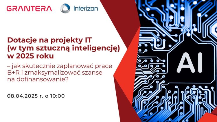 8-go kwietnia 2025 r. o godzinie 10:00 zapraszamy na bezpłatny webinar organizowany przez firmę doradczą Grantera, specjalizującą się w pozyskiwaniu dotacji dla branży IT. Partnerem wydarzenia jest Pomorski Klaster ICT – Interizon.